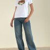 In a black jersey fabric, the Saki tee features a relaxed fit with a longline hem, short sleeves and a crew neckline. Complete with a tea time print detailing centre front in blue and white.