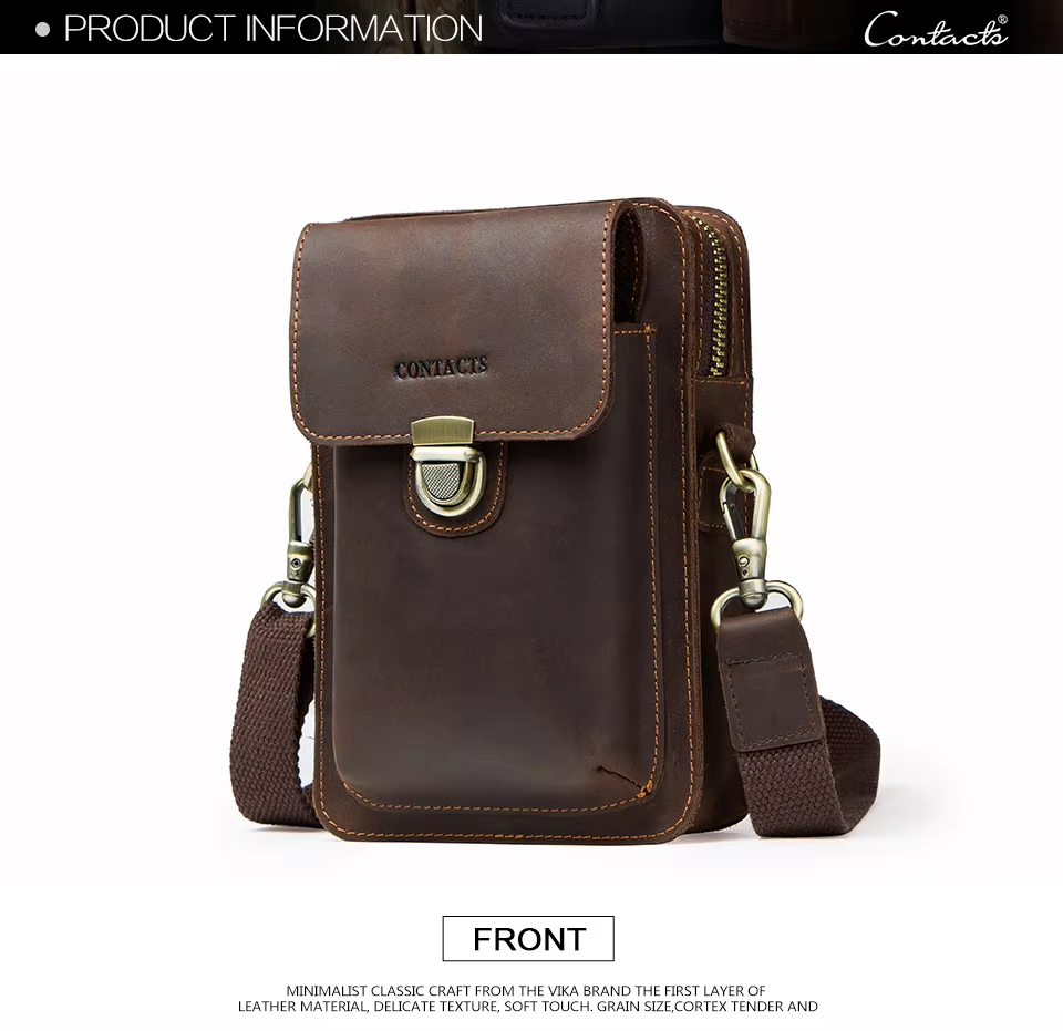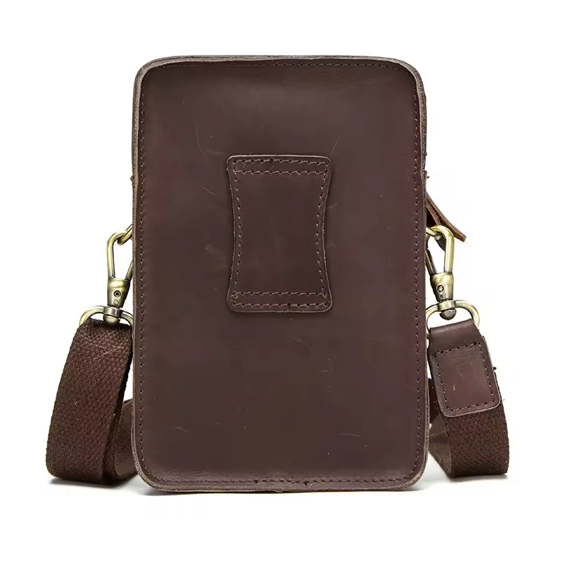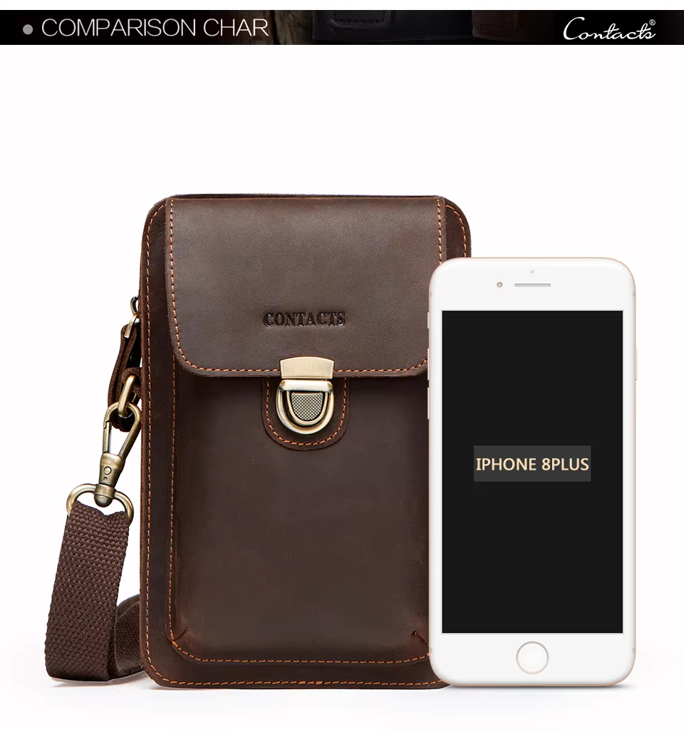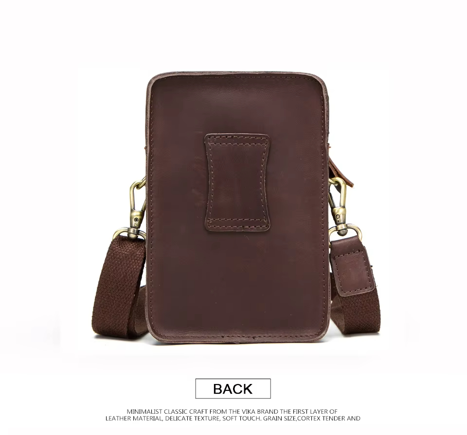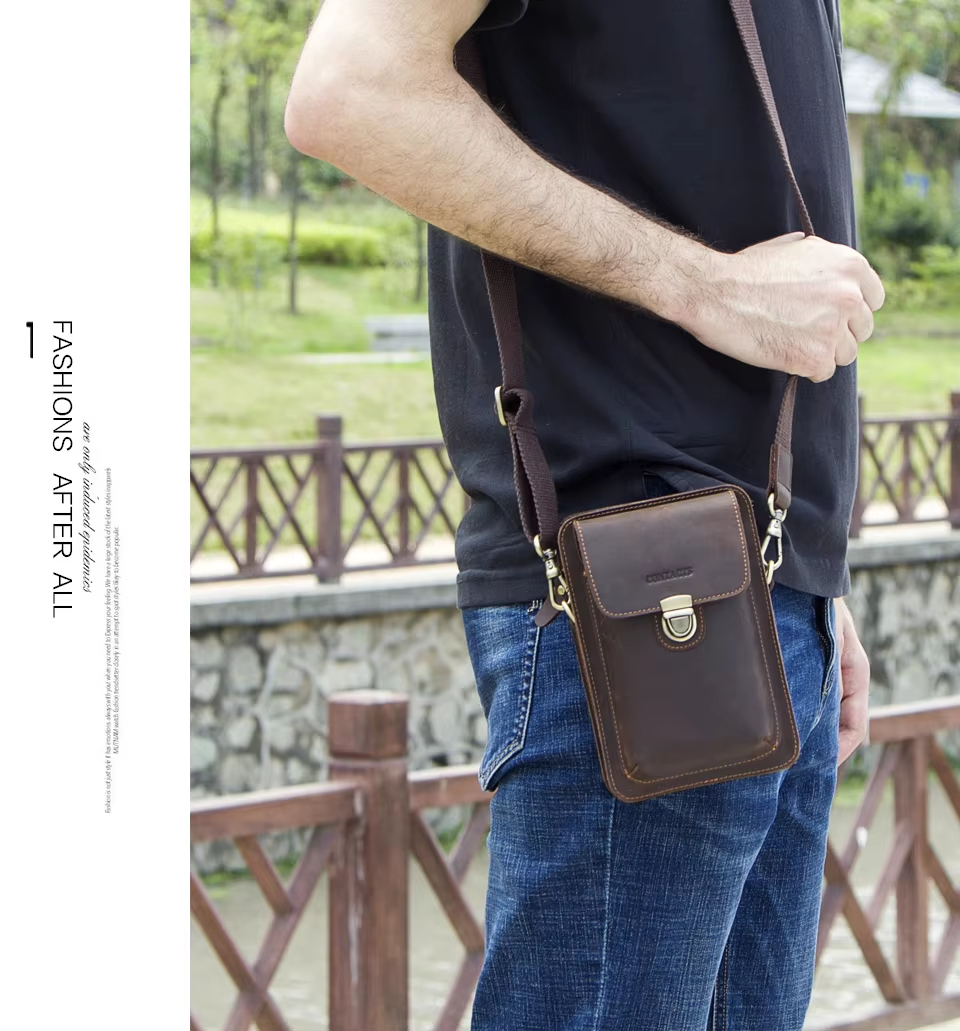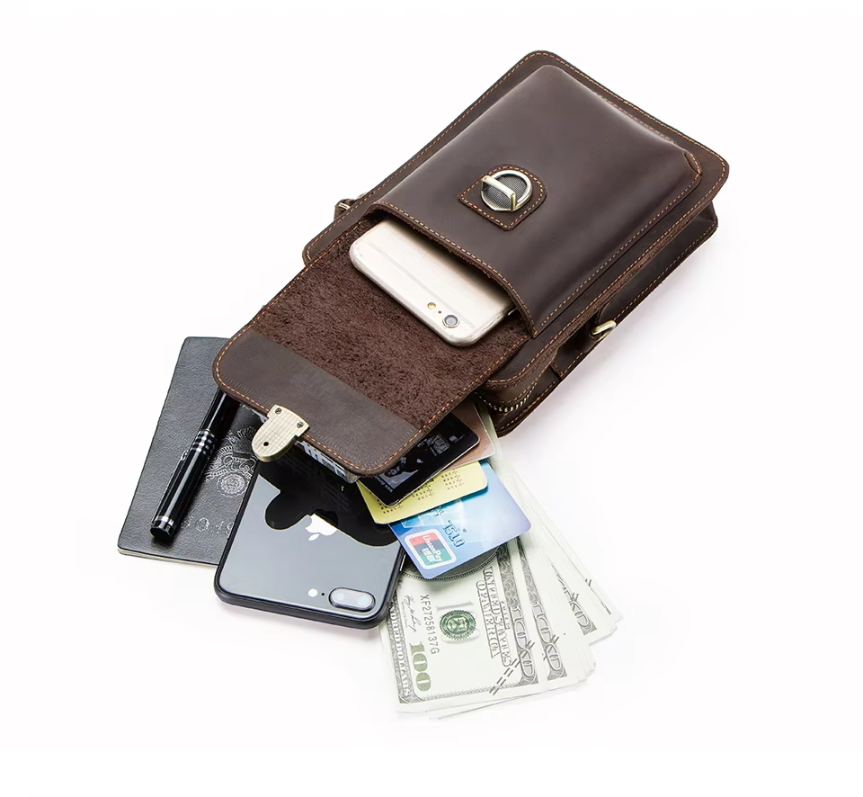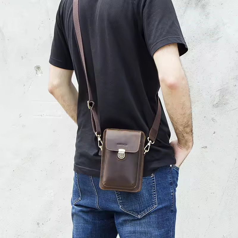 Men’s Leather Phone Bag Vintage Small Leather Belt Bags for Mens Sling Phone Bag With Push Lock and Card Slots