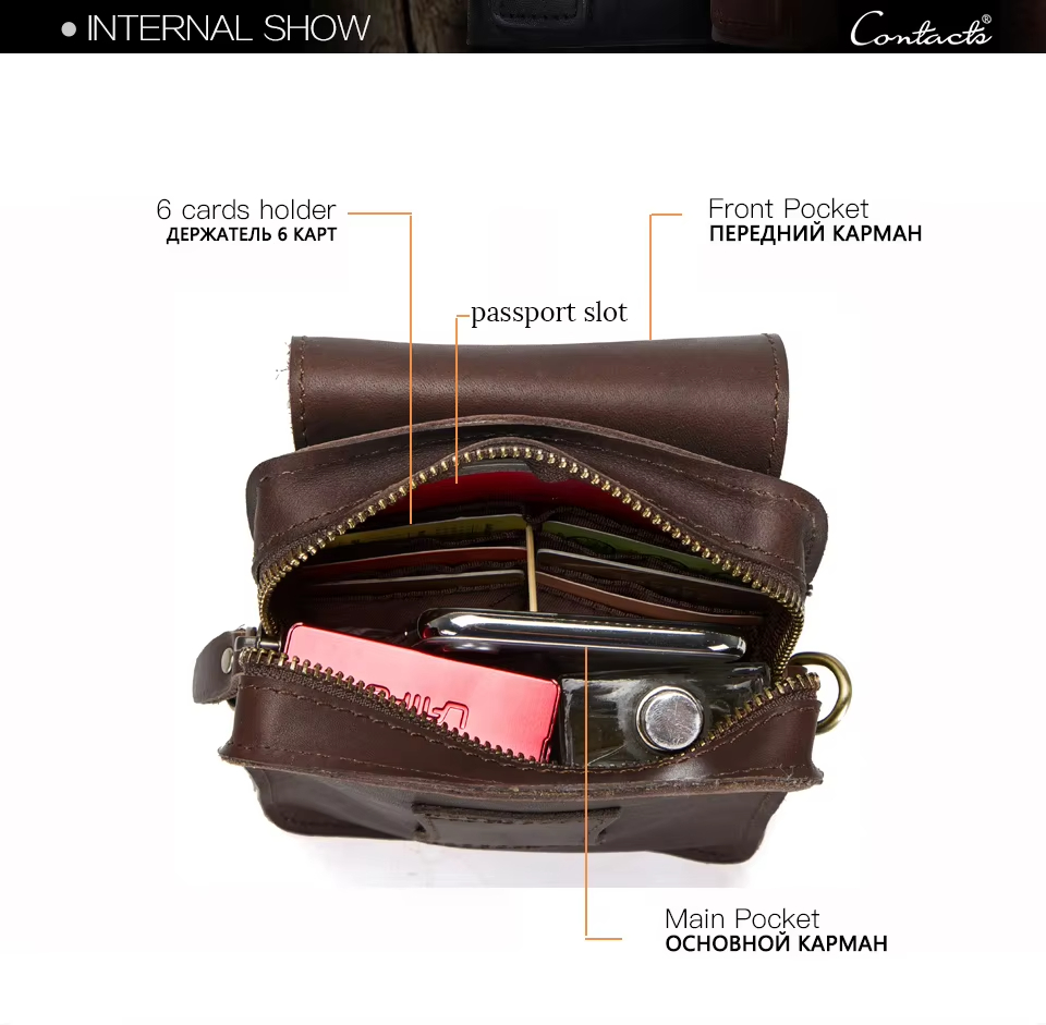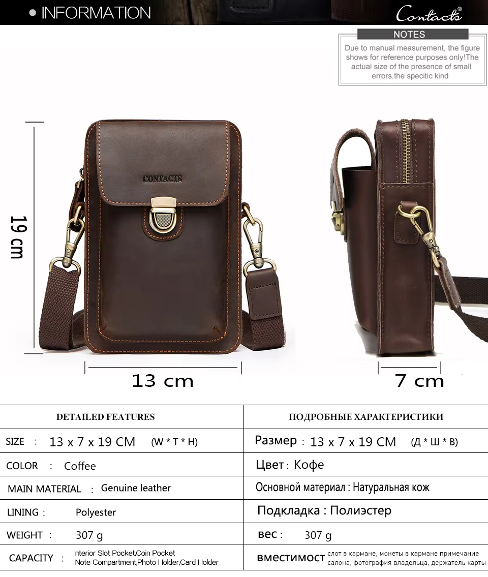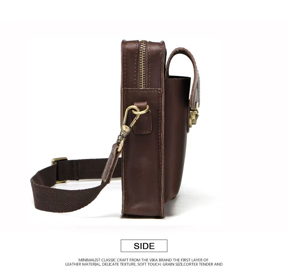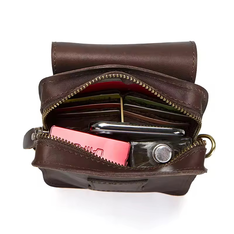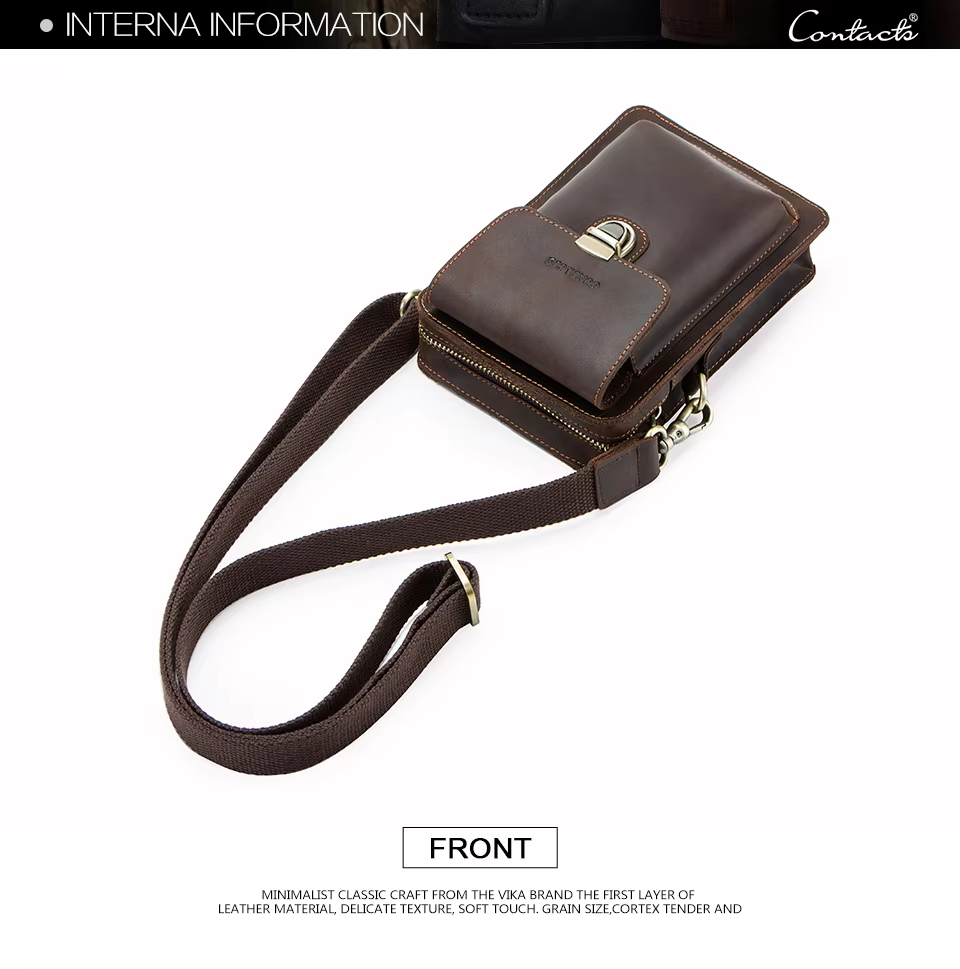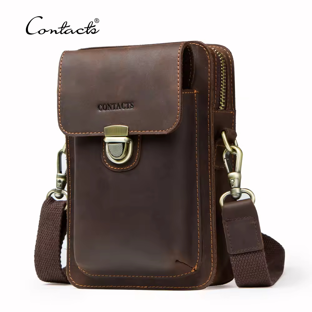 Men’s Leather Phone Bag Vintage Small Leather Belt Bags for Mens Sling Phone Bag With Push Lock and Card Slots