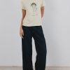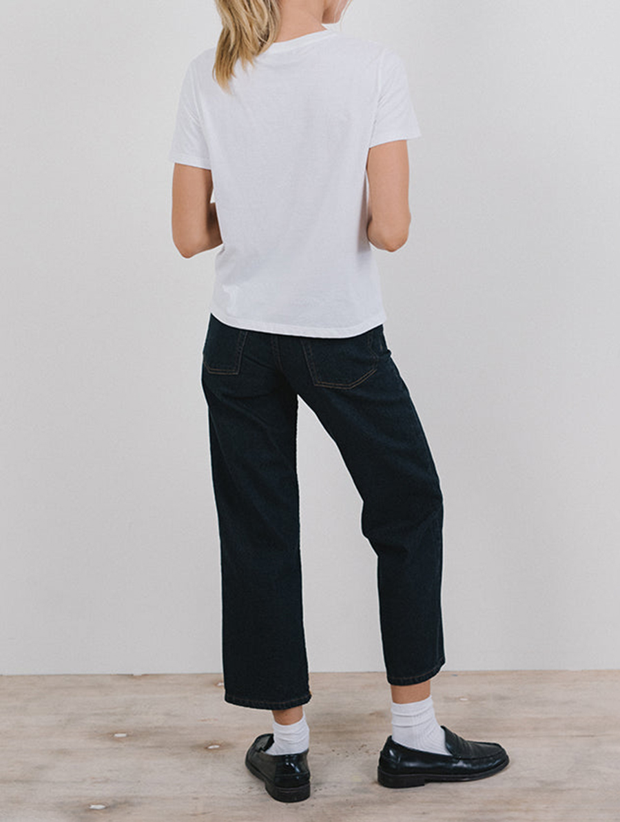 Loose fit short sleeve tee, Saki features a crew neckline and regular length in a white fabric printed with deer graphic in the centre front.