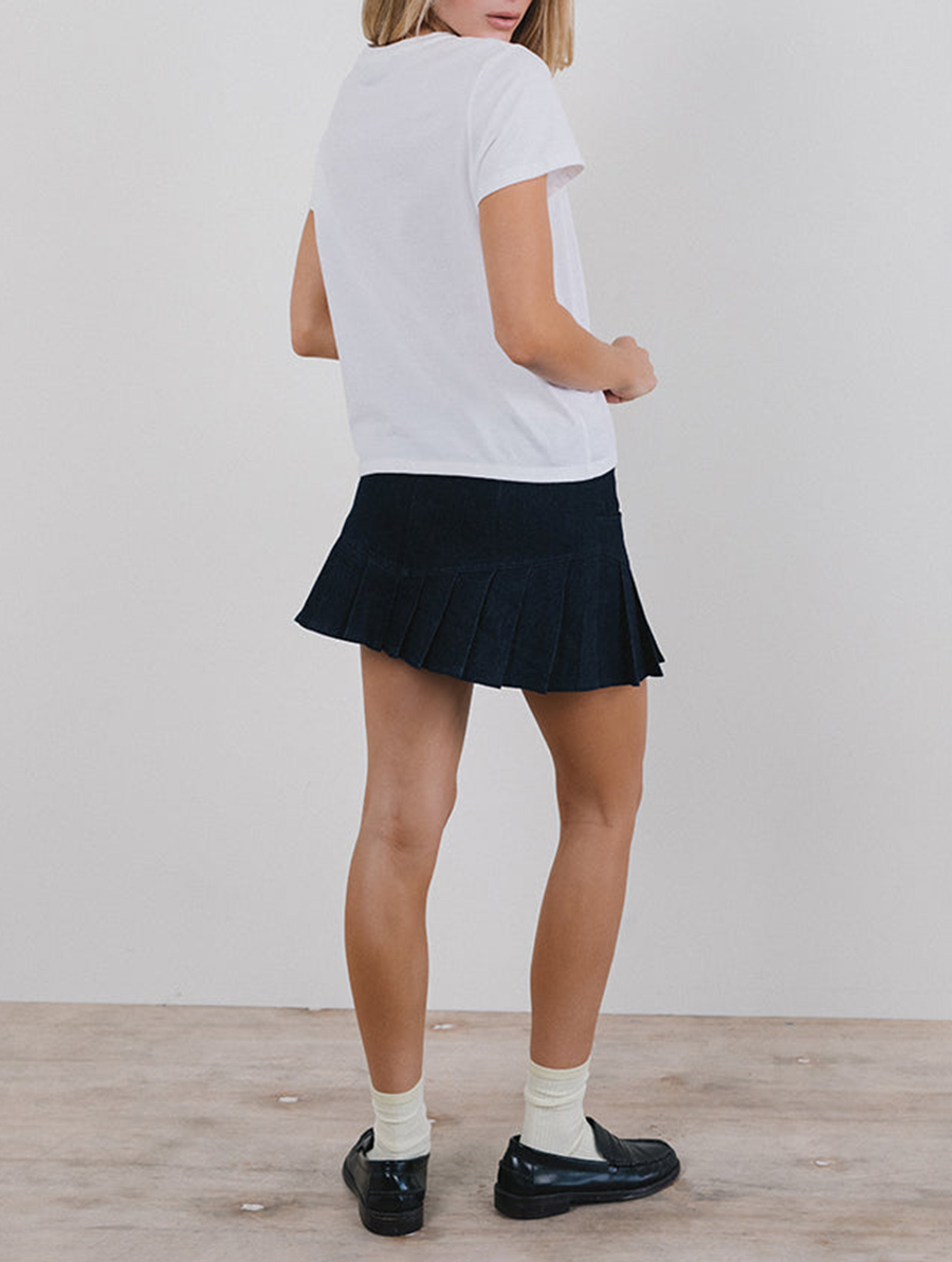 Loose fit short sleeve tee, Saki features a crew neckline and regular length in a white fabric printed with baby deer strawberry graphic in the centre front.