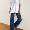 Monsel Tie Front Top In White With Faded Denim Binding 1585